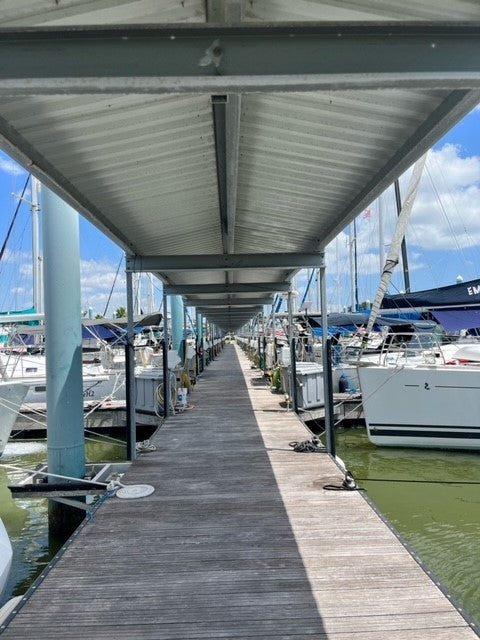 Seabrook Marina covered floating slips can accommodate boats from 45' to 60' with a clearance of 28 feet. All of our slips have 4 feet concrete finger piers on both sides of the boat. Our covered floating docks are the largest in the Galveston Bay and Clearlake area.